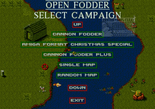 Open Fodder is military-themed and based on shooting action but with a strategy game-style control system. The player directs troops through numerous missions, battling enemy infantry, vehicles and installations.