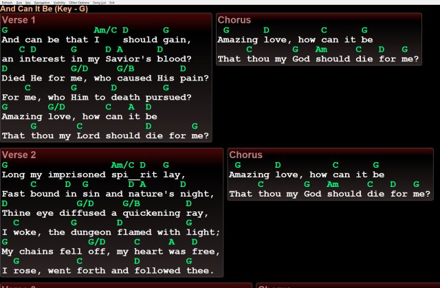 It allows the user to present songs and sets on a computer screen, so printing out all your song chord charts is a thing of the past. Its Open Source, easy to use, clean, and has a clutter-free interface.