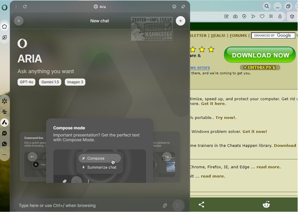 In addition to these innovative features, Opera maintains its commitment to user privacy and security with essential tools like a free, no-log VPN for safe browsing, an ad- and tracker blocker that enhances page loading speeds and user experience, and Aria, the browser's native AI assistant that simplifies navigation and search.