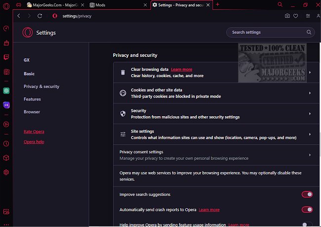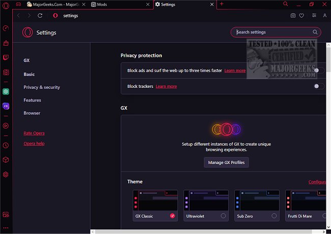 Ad blocker and tracker blocker: Opera GX also gives you the ability to experience greater privacy and security with its free, no-log, unlimited browser VPN. You can also use the free VPN feature to access geo-restricted content and secure your connection. These features can speed up browsing and protect privacy.