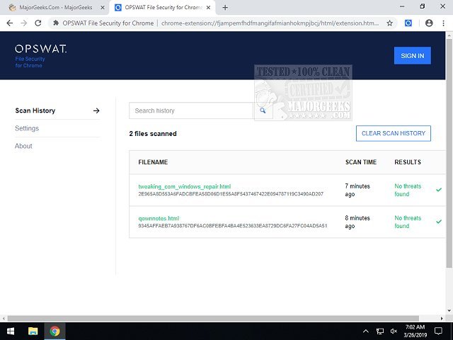 Screenshot for OPSWAT File Security for Chrome