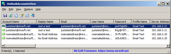 OutlookAccountsView is a password recovery tool for Windows that displays the details of all POP3/IMAP/SMTP accounts stored in your Outlook profiles.