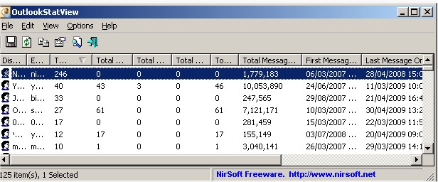 OutlookStatView instantaneously scans your entire Outlook mailbox and then displays general statistics in an easy-to-read table about the users you communicate with via emails.