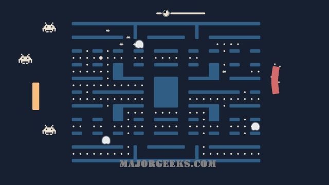 PACAPONG is a fun little game that is hard to play. You play Pong style knocking packman ghosts back and forth in a Pac Man board while dodging the Space Invaders guys by moving your paddle left and right. And that’s all before the occasional Donkey Kong appears to make it even harder. Anyone who loves retro games will enjoy this one.