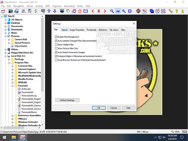 Panorado will also help you keep all your numerous images organized via the navigation bar, which lets you browse through your pictures on hard drives, CDs, DVDs, memory cards, and digital cameras. File management is done through an explorer-like process, including right-click support. There is also an Organizer tool that assists in finding, selecting, and arranging your images, and batch options are also available.