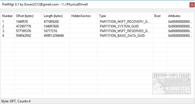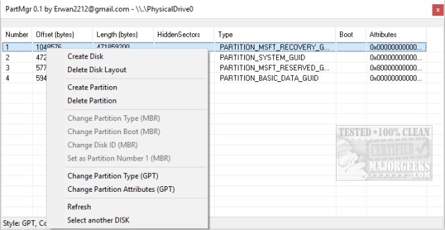 Anyone using computers for a long time will remember when the only partition programs were shareware and expensive. We've come a long way with PartMgr because it is not only free and portable but can create, delete, add, and even your partition type and Disk ID all in a package under 2MB. Of course, playing around with your partitions is for experienced users and using a small, third-party app even more so. We're mentioning this a few times only because partitioning can quickly render your computer unbootable, and there's no going back.
