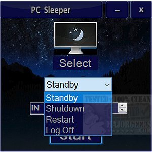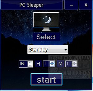 PC Sleeper is designed to make the process fast and simple with little or no monitoring from you. Simply set up what action you would like PC Sleeper to perform then select the time interval then hit start and go about your business.