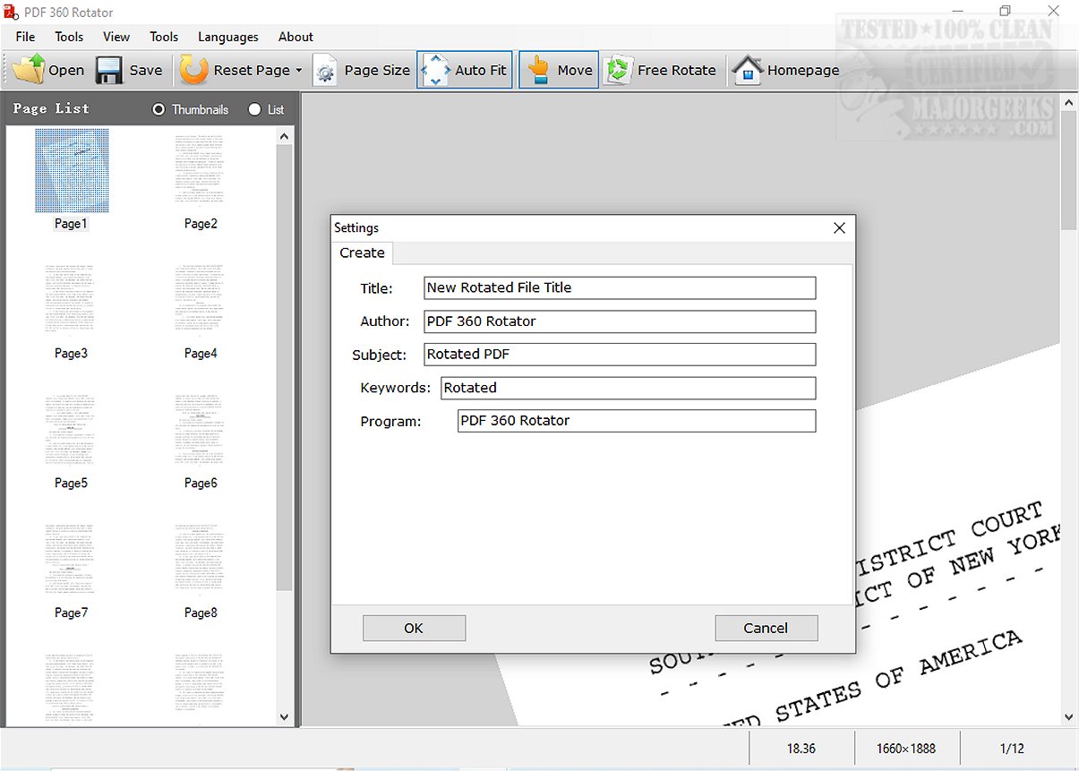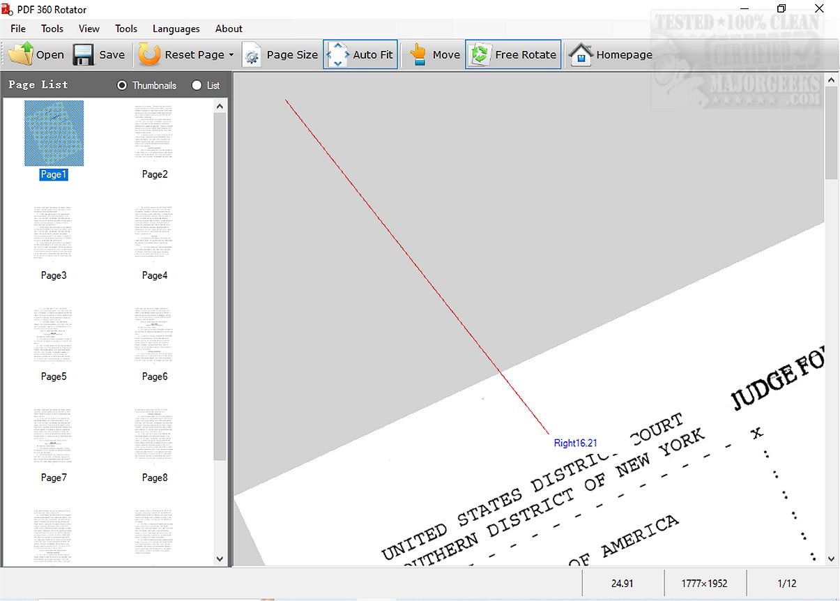 PDF 360 Rotator can rotate PDF pages at any angle, rather than being limited to the standard increments of 90, 180, or 270 degrees, all from a user-friendly, free Windows software. This program is handy for correcting the orientation of slightly tilted pages, ensuring the text is easy to read and perfectly aligned. With PDF 360 Rotator, users can achieve precise adjustments to page orientation for improved legibility and presentation.