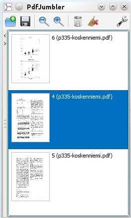 A simple tool to rearrange/merge/delete pages from PDF files. The modular backend system uses either JPedal or JPod to display PDFs and iText or Apache PDFBox to save them.