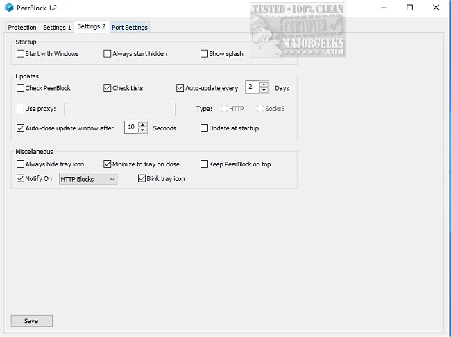 PeerBlock enables you to activate or deactivate both IP and HTTP trackers. It also includes a log that displays the tracker's time, source, IP address, destination, and protocol. Additionally, the program offers a list of settings that allow users to customize its interface and operations.