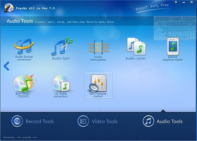 Pepsky All-In-One functionalities include data/music/file disc burning, disc copy, music disc burning, video/audio format transition, video/audio edition, CD/DVD video/audio extraction, etc. The features included will fit the bill for anyone wanting to perform almost any type of multimedia job without costing you an arm and a leg to do it. It supports saving to MP3, WAV, WMA, AAC, AU, AIF, APE, VOC, FLAC, M4A or OGG file extensions when ripping audio CDs as well as MPEG-4, ASF, AVI, DivX, XviD, FLAC, WMV or RMVB file formats for DVD. It was extremely easy to use, and the test jobs we performed were rendered quickly without any noticeable issues. Pretty good for a free app.