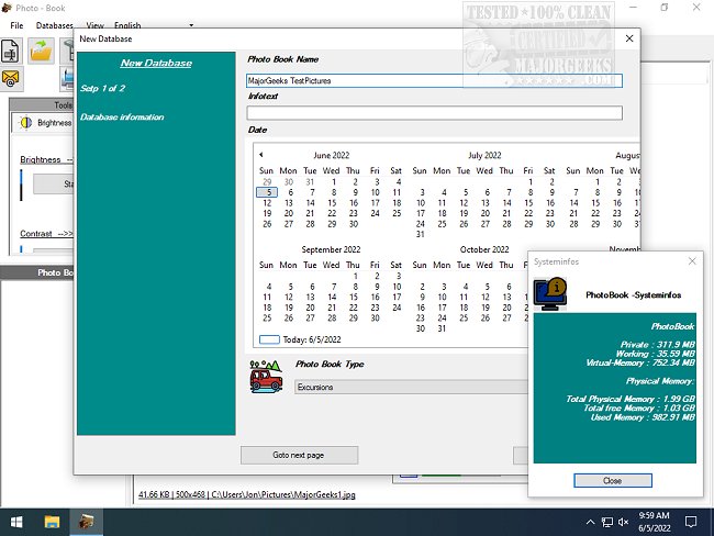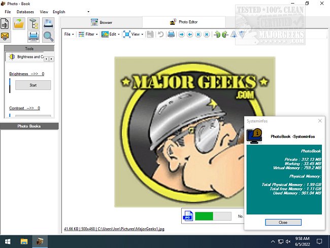 Photo Book also gives you the ability to view your machine's memory data. If you need a photo organizing app with database creation capabilities that aren't overly complicated, you should give Photo Book a try.