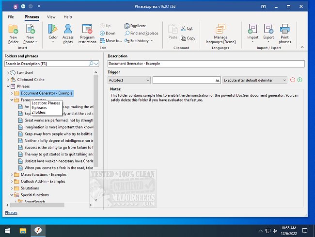 PhraseExpress is for the organization of frequently used text phrases or snippets, expanding abbreviations, launching programs with text shortcuts, and more.