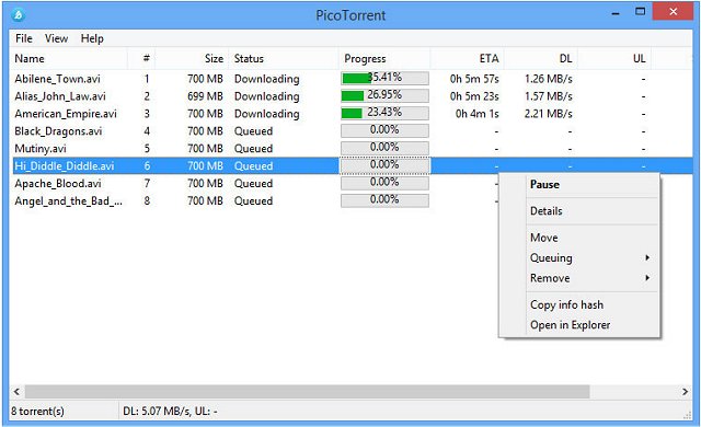 It is the essentials of a BitTorrent client and includes only individually picked features, no ads, and is rolled into a native interface, ensuring that it has a seamless desktop integration. PicoTorrent is designed to be as simple as possible and is built directly on the Windows API for a familiar look to any Windows user; access to the necessary controls is contained within your context menu.