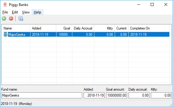 Piggy Banks is a simple and portable application that lets you track how much money you put away every day to save up for something.
