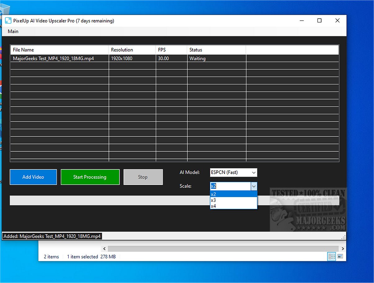 PixelUp AI Video Upscaler Pro offers a variety of advanced AI models to meet your specific video enhancement needs. You can select from options such as EDSR for ultra-quality, ESPCN for fast processing, FSRCNN for balanced performance, or LapSRN for high fidelity. Additionally, the software features flexible scaling options, allowing seamless upscaling of your content by 2x, 3x, or 4x its original resolution.