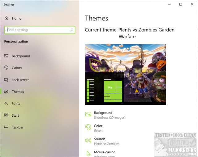 Plants vs. Zombies Garden Warfare Theme features 20 images and one custom color, and a custom sound pack. No mouse cursors are changed.