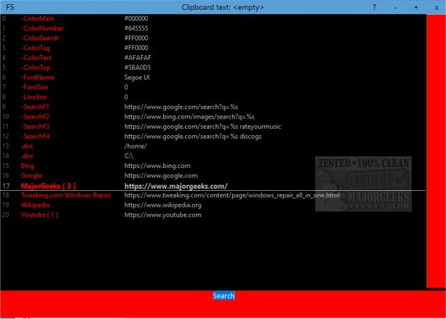 Any hyperlinks copied to your clipboard while using Portable Bookmarks will be added to bookmarks automatically. You can then tag or delete them later. Any text found on your clipboard not containing a URL will be added to the search field automatically.