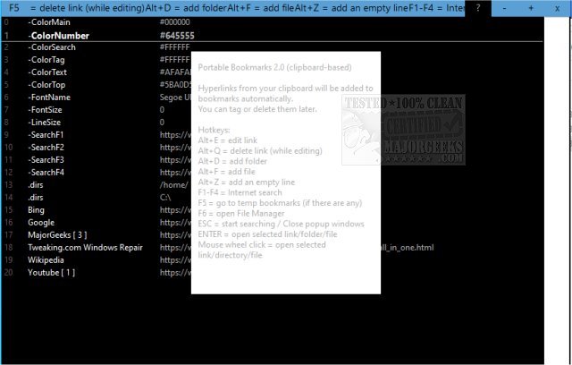 Portable Bookmarks has a fully scalable UI that includes customizable colors. Along with Windows, the download also includes Linux.