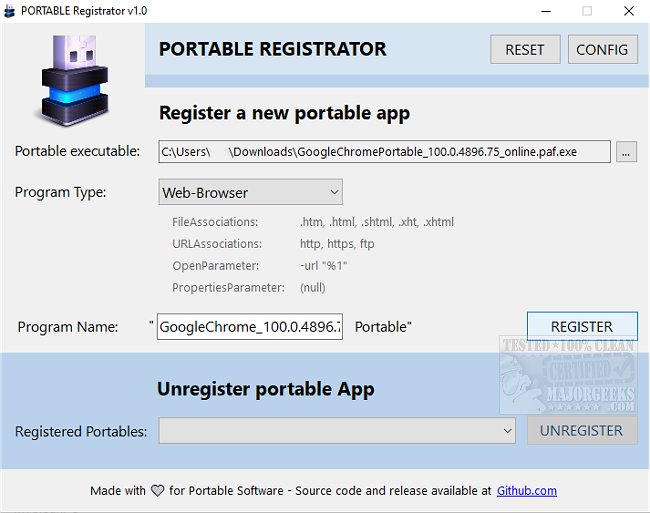 PORTABLE Registrator is an Open Source app capable of making portable apps the default handlers.