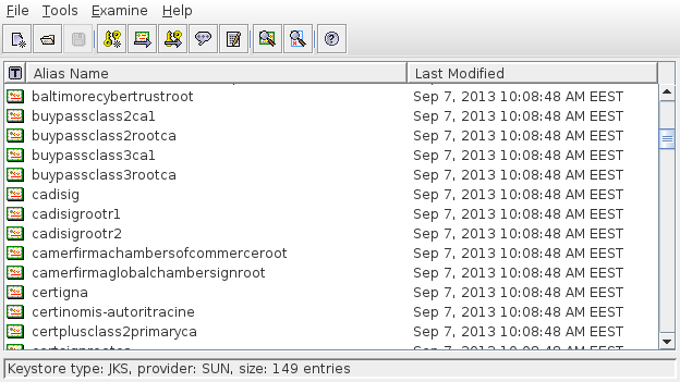 Portecle is a user-friendly GUI application for creating, managing and examining keystores, keys, certificates, certificate requests, certificate revocation lists and more.