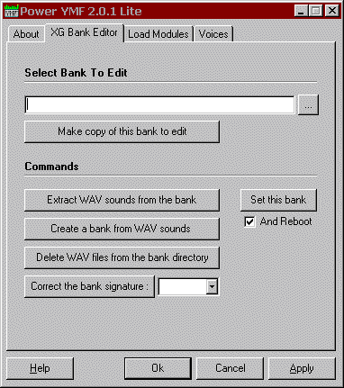 The program allows you to tweak your YMF7x4 (YMF724, YMF740, YMF744 and YMF754) sound card driver. Using this program you can increase quality of WAV and MP3 files and audio CD playback. You can enable non-documented high quality 44.1 to 48 kHz samplerate converter to increase quality of WAV and MP3 playback and quality of audio CD. The program includes high quality 4.61 MB wavetable bank, so you can set it instead of default 2.3 MB 8-bit quality bank and hear XG and GM/GS MIDI files with the professional sound quality. You can also download additional Dance Bank with modern samples and compose dance, techno, jungle and trance music using XG technology without external wavetable samplers. Voice controls allow you setup optimal balance of hardware voices between MIDI, audio and game applications. You can enable up to 64 voices for MIDI files playback. You can enable and disable some hidden and standard features of the software driver: the DS-XG control paned tabs, DirectSound 3D functions, game port interface, Legacy support, Soundius XG Synthesizer, SP/DIF interface, Power Control Module etc. If your manufacturer stops development new software drivers, you can use the driver from another manufacturer. The program helps you to setup this external driver to your hardware. The utility can change features set of the external hardware driver and even enable hidden features. It includes also over 1MB of high quality XG MIDI files, licensed by the world best XG MIDI composers to use with the program.