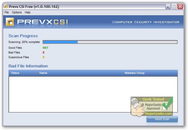 The Prevx CSI - FREE Malware Scanner is a fast effective scanning and real-time checking against the most comprehensive malware database in the world.