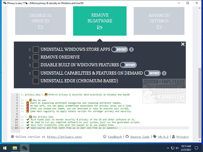 privacy.sexy provides you with various system tweaks to bolster your machine's security and privacy.
