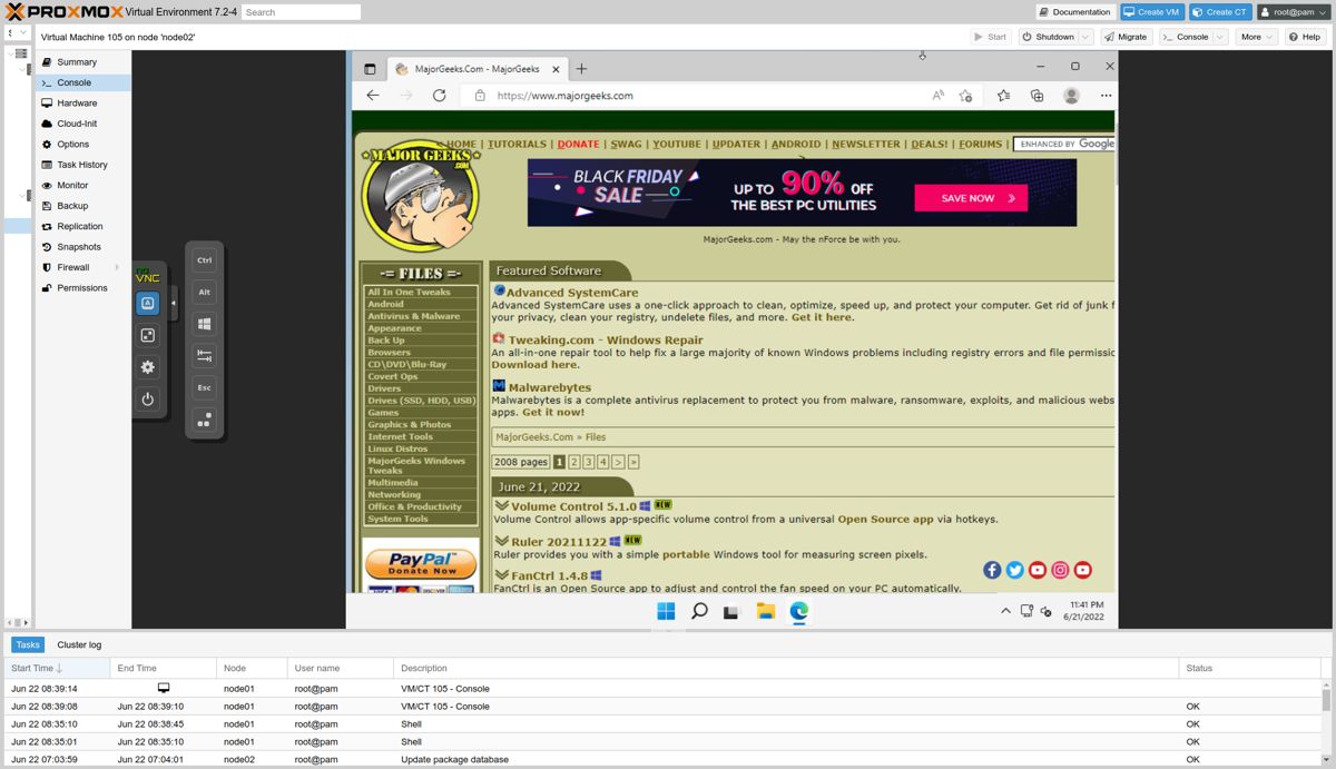 Proxmox VE is an open-source platform that simplifies the management of virtual machines (VMs) by integrating hypervisors, containers, storage, and networking into a single accessible package. The core technology behind Proxmox VE is Kernel-based Virtual Machine (KVM) and Linux Containers (LXC), allowing users to manage VMs and containers from a web interface without needing specialized commands. This platform shines in enterprise-level virtualization tasks, offering integrated management of KVM and LXC, live migrations without downtime, and high-availability clusters that are simple to set up.
