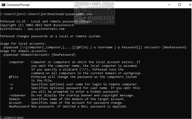 PsPasswd is a tool that enables users to modify the password of a local or domain account on a computer, whether it's located locally or remotely.