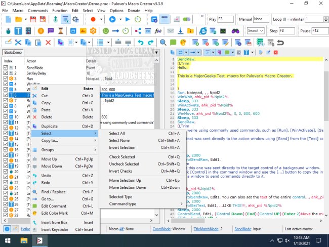 Pulover's Macro Creator is chock full of options and features an extensive range of automation commands. It includes a built-in recorder and can capture inputs right from its interface. Macros can be executed directly from the program, or you also have the option to export them to an AutoHotkey Script format.