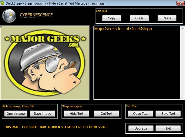 Only people that have QuickStego can retrieve the message placed in the image. These messages are not encrypted by any means so if you want to add encryption you can do so with other encryption software for that added bit of security - we have a category full of them.