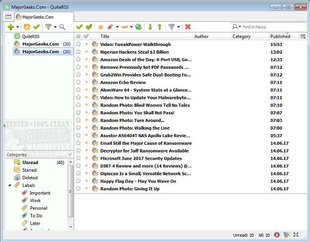 QuiteRSS is an Open Source cross-platform RSS/Atom news feeds reader. Follow MajorGeeks RSS feeds here.