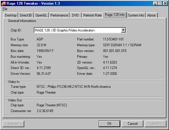 Screenshot for Rage 128 Tweaker