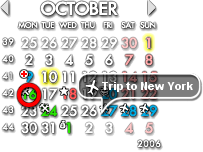 ● The appearance of the calendar can be changed with skins. The skins can be of any shape and size, and they can also contain buttons for additional functionality. It's also possible to combine different skins by using, e.g., the calendar from one skin and event and a to-do list from another. The events can have a different appearance depending on their category.