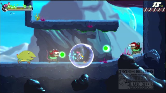Raygun Gadabout is a side-scroller where you befriend helpful aliens, battle space pirates, solve puzzles, and equip new abilities as you seek to liberate the galaxy from the clutches of the Space Gopher Empire.