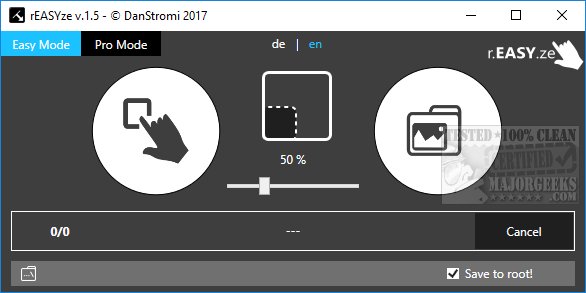 rEASYze makes it easy for anyone to use with the Easy and Pro modes for any skill level. In Easy Mode, simply drag-and-drop your images into the Window. Drag your photos into the Window and use the Zoom slider to crop your image to the size you want. We had no luck dragging and dropping or selecting GIF and JPG images into the Window in Easy Mode. rEASYze just opened the new folder and not the picture. Because of this using Pro mode is your best move.