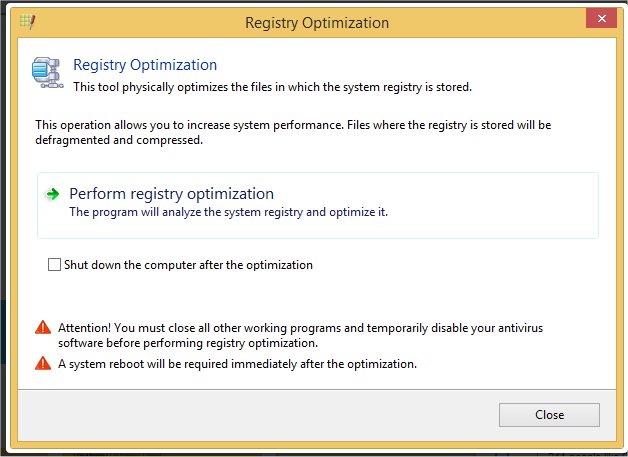 Registry Life includes a tool to defragment and compress the registry. Unlike other similar programs, you can schedule an automatic system registry optimization on start-up.