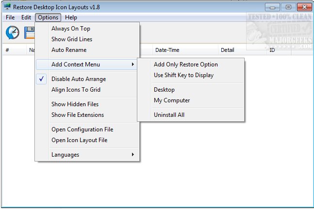 ● Easily add the “Save/restore Icon’s Layout” feature in the Context menu