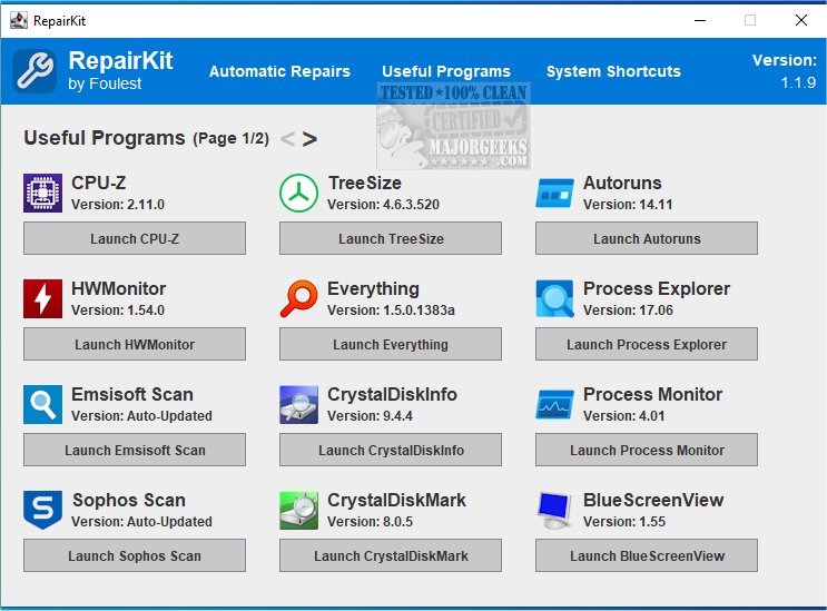 RepairKit also allows you to quickly access a series of third-party apps that can prove beneficial for PC maintenance. If the apps are out-of-date, you can update them when they are run.