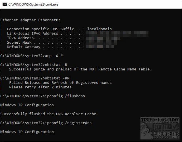 Download Reset and Renew Your Internet Connection Batch File from MajorGeeks.