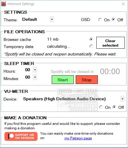 rhiimoot also has a cache-cleaning function. When you listen to anything on Spotify, it fetches the data online and then writes it on your drive. For example, you want to go back and listen to a song you enjoyed previously. It doesn't go back online to obtain that data but will use the data written to your drive. This process is done for expediency and reduces your internet data usage, and inevitably this data collects over time. rhiimoot helps solve this through the included cache cleaning service.