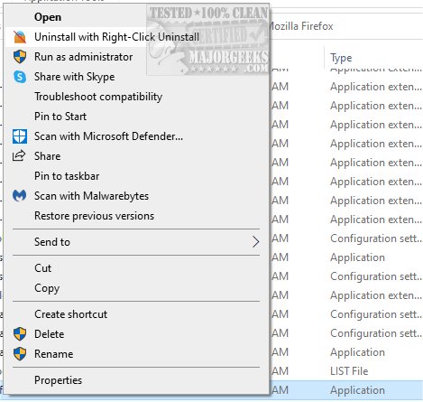 Right-Click Uninstall does get a hit on VirusTotal, and you may get a warning from your antivirus that the file isn't commonly downloaded.