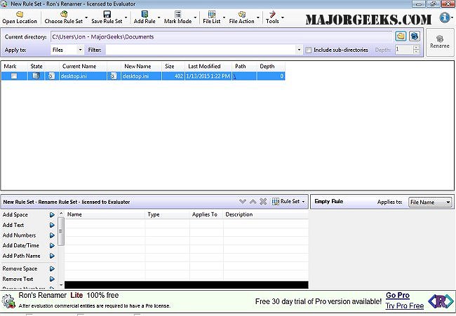 Free: Ron’s Renamer PRO (No row limitation, + Command Line Support and Rule Set Shortcut) - 1-month evaluation