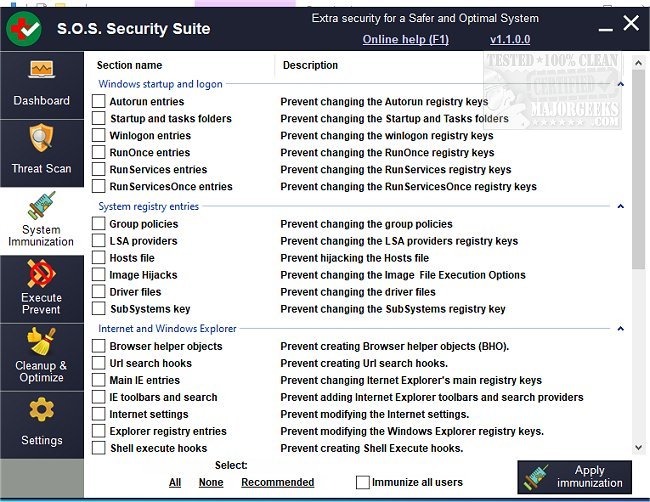 It also provides you with a threat scan. In addition, it has a System Immunization and Execute section that will prevent work by preventing threats from being executed instead of just blocking them when they are being performed. You can also whitelist apps easily.