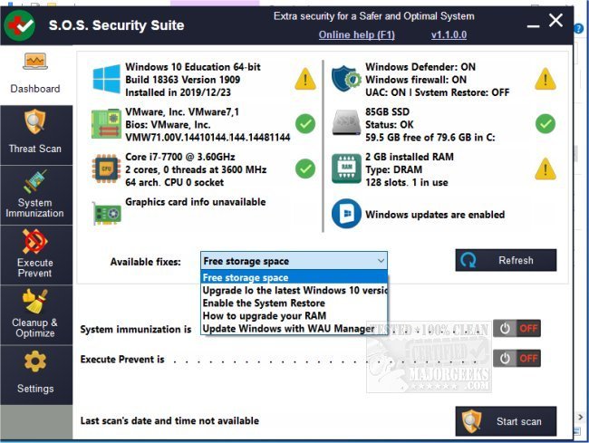 S.O.S Security Suite should be used alongside your full-service antivirus app of choice like Malwarebytes and should be considered another layer of protection for your machine. As mentioned above, it includes a system flaw detection module that will notify you about any software or hardware-related issues and then help fix them.