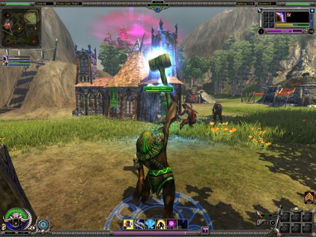 Most of the players on each team are "action players," fighting the other team's action players on the field, using powerful third person melee and weaker first person ranged combat. The action players can choose from a selection of unique units to play as, and may earn gold from their actions on the field, which in turn may be either donated to the team, spent on useful items in an RPG fashion, or used to buy more powerful units.