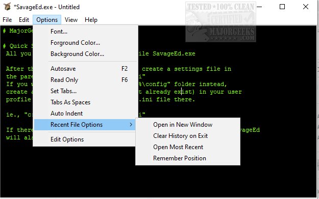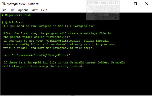 All you need to run SavageEd is the file SavageEd.exe - After the first run, the program will create a settings file in the parent folder called "SavageEd.ini" If you wish to use your "%USERPROFILE%\config" folder instead, create a config folder (if one doesn't already exist) in your user profile folder, and move the SavageEd.ini file there. i.e., "c:\user\mako\config\SavageEd.ini"
