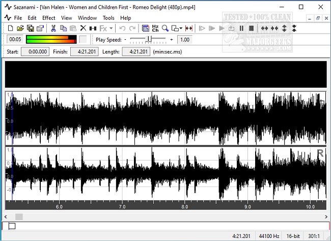 Sazanami gives you access to a full-featured audio editor/player that permits the editing of sound files.