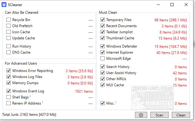 SCleaner is straightforward to use and doesn't contain numerous selection items making it an excellent tool for the novice user. Still, it does enough that even a more experienced user can benefit since it is quick and portable.